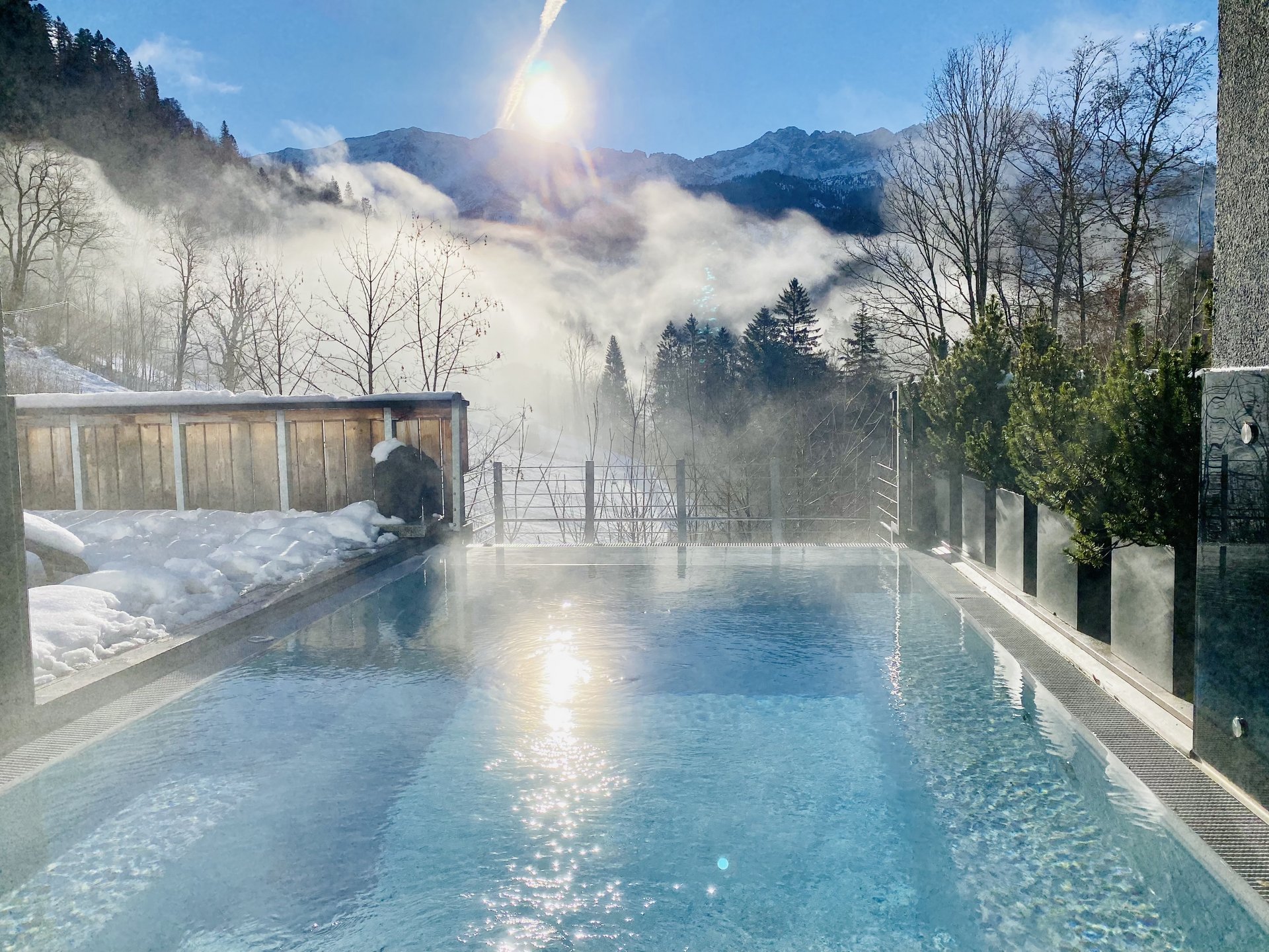Entspannen, Kraft tanken, die Sonne genießen, sich fit halten, Bergriesen bewundern oder einfach nur innehalten und magische Momente genießen. Tauchen Sie in unserem Poolbereich für ein Weilchen ab und erleben Sie Wellness vom Feinsten, weit weg von der Stadt, der Hektik und den Menschenmassen. Ihr treuer Begleiter? Der sagenhaft schöne Ausblick auf die unberührte Natur und die imposanten Gipfelwelten vor Ihren Augen!